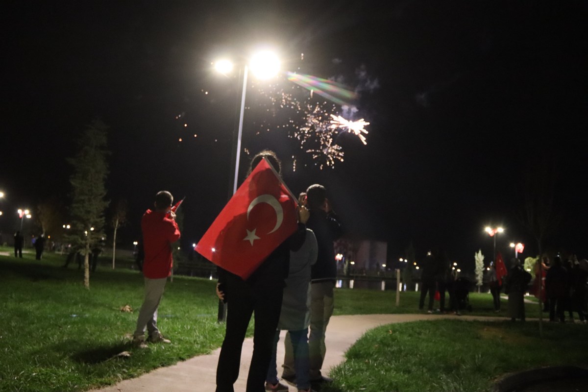 Millet Bahçesinde son bulan yürüyüş katılan Iğdırlılar, marşlar eşliğinde havai fişek gösterisini izlediler.